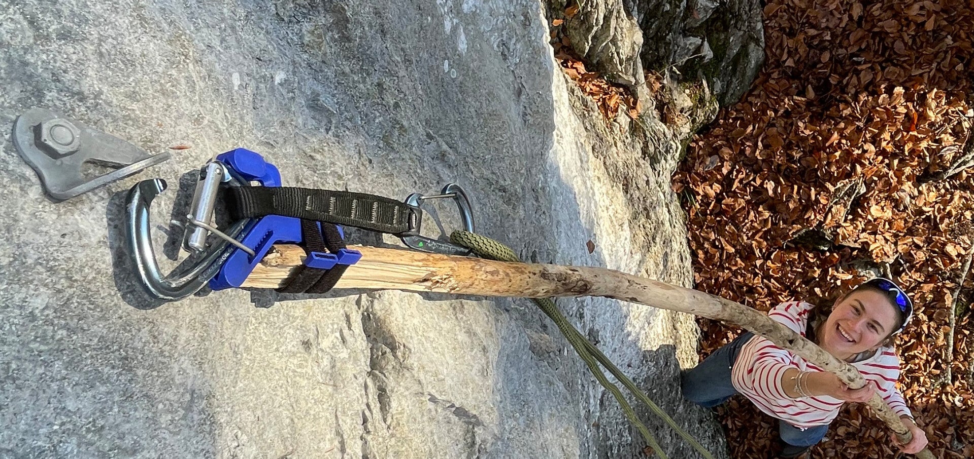 Der Pocketclip wurde entwickelt als Clipstick für die Hosentasche. Ein Clipstick ist ein Hilfsmittel, mit dem man beim Sportklettern auf sichere Art vom Boden aus den ersten Haken einhängen kann. Mit dem Pocketclip muss man nicht mehr überlegen, ob man einen Clipstick mitnehmen möchte, oder nicht. Mit seinem Format kleiner als gängige Smartphones und seinem Gewicht unter 40 Gramm vergisst man den Pocketclip in der Tasche, bis man ihn eben braucht. Einfach einen geeigneten Ast auf dem Weg zur Route einsammeln und loslegen! Kleiner Tipp: an den meisten Wänden lehnt bereits ein Ast als improvisierter Clipstick!